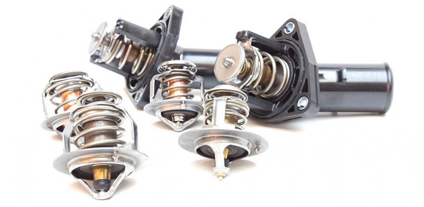تمام موتورهای احتراقی که با مصرف سوخت فسیلی و تبدیل انرژی شیمیایی ناشی از آن به انرژی مکانیکی کار میکنند در سیستم خنک کننده خود قطعهای کوچک اما مهم به نام ترموستات (به انگلیسی Thermostat) دارند. ترموستات قطعه کوچکی است که بین موتور و رادیاتور خودرو قرار می گرد و وظیفه دارد که دمای حرارت موتور را همواره نزدیک به دمای عملکردی آن نگه دارد؛ ترموستات این وظیفه خود را با تنظیم جریان مایع خنک کننده از رادیاتور به موتور انجام میدهد. این نوع ترموستات با استفاده از یک محفظه مهر و موم شده حاوی یک پودر مومی که با دمای خاصی ذوب و منبسط میشود عمل قطع و وصل حریان مایع را مدیریت میکند. انبساط این محفظه زمانی که دما از حد معینی فراتر رود عمل کرده و سوپاپ را باز میکند.