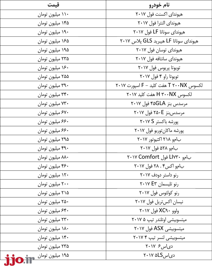 | حدود قیمت | مدل ماشین |